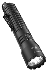Tactical flashlight with a maximum light output of 1 800 lumens and a beam distance of up to 510 meters provided by the Luminus SFT-40 Gen 2 LED chip. Smart electronics enables the lighting in 5 modes โ four different brightness levels and a stroboscope.